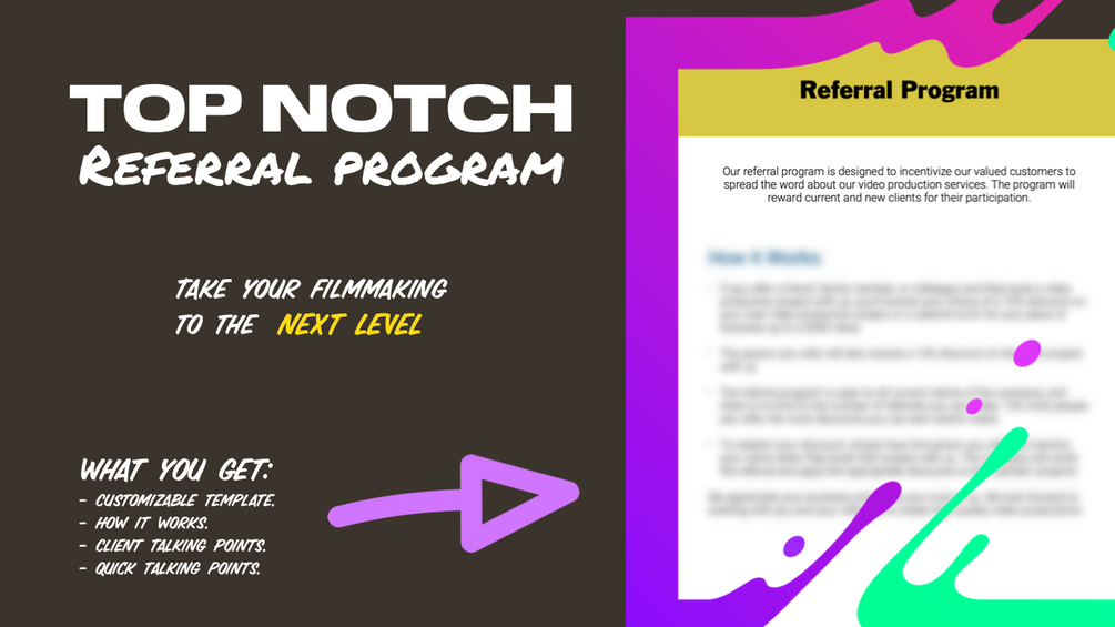 This template is designed to inform your current and future clients of how the referral program works and how they can educate others about your video services.