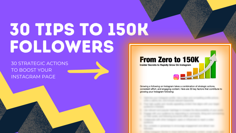 Get 30 Tips to 150K Followers to help you grow your Instagram page!